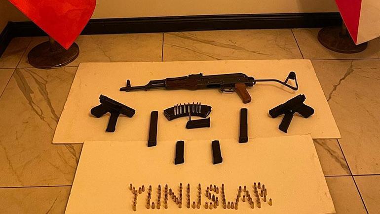 Otel odasında arama yapan polis, katlamalı yatağın altına gizlenmiş, örtüye sarılı halde kalaşnikof olarak bilinen uzun namlulu silah ele geçirdi. Devam eden adamlarda odada, 2 ruhsatsız tabanca, uzun şarjörler 38 kalaşnikof mermisi ve 99 da tabanca mermisi de bulundu. Aramaların ardından gözaltına alınan 2 şüpheli emniyete götürüldü. Burada ifadeleri alınan şüpheliler, işlemlerinin tamamlanmasının ardından adliyeye sevk edildi.