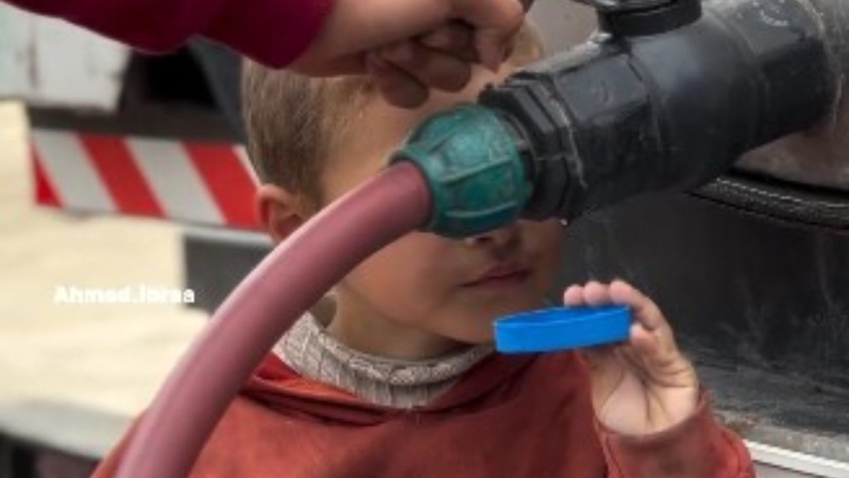 İsrail’in saldırıları ve ablukasındaki Gazze’de su kıtlığı yaşanırken, bir tankerden şişesini doldurmaya çalışan çocuğun çabası yürekleri burktu.