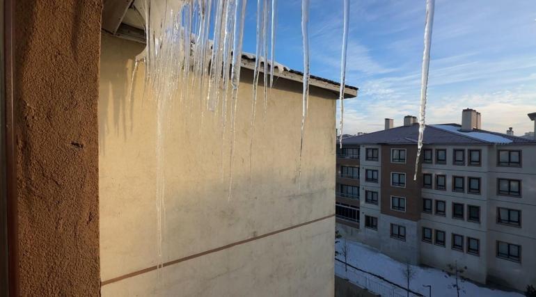 Dondurucu hava nedeniyle ev ve iş yerlerinin çatılarından sarkan buzların boyu ise yer yer 3 metreyi geçti.