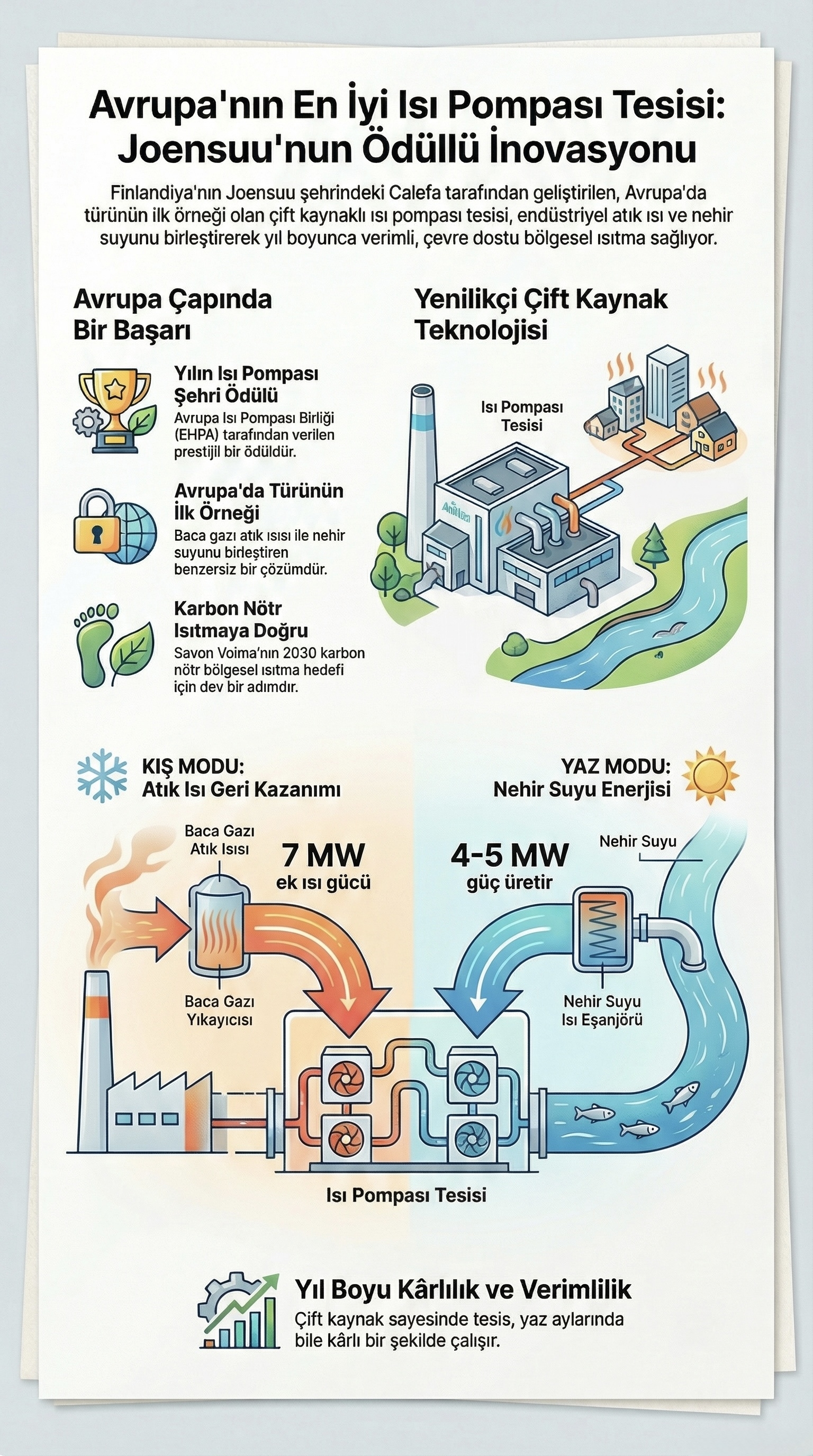 Merkezi ısıtma sistemleri Avrupa’da oldukça yaygın ve bu sistemlerin yeşil enerjiyle çalışabilir hâle getirilmesi büyük önem taşıyor. Bu kapsamda geliştirilen çok kaynaklı ısı pompası projesi, Avrupa’da “Heat Pump City of the Year” (Yılın Isı Pompalı Şehri) ödülünü kazandı.