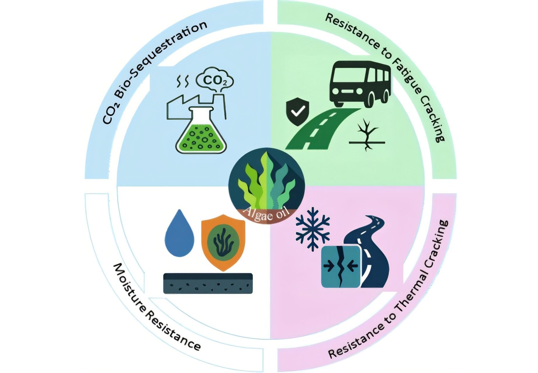 Bilgisayar tabanlı modellemelere göre asfalt karışımına eklenecek her yüzde 1’lik alg bazlı biyobağlayıcı, toplam net karbon emisyonunu yüzde 4,5 oranında azaltıyor. Teorik olarak karışımın yaklaşık yüzde 22’sinin bu biyobağlayıcıdan oluşması asfaltın karbon açısından nötr hale gelmesini sağlayabilir.